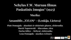 Spalio 30 d. (ketvirtadienį), 18.00 val. Marijampolės kino teatre „Spindulys“ įvyks festivalio „Medynės’2025“ uždarymo koncertas, kuriame ansamblis „XYLOS“ (Lenkija, Lietuva), pakvies į ankstyvojo kino reprezentanto Friedricho W. Murnau filmo „Paskutinis žmogus“ (1924) peržiūrą su šiam filmui specialiai sukurtomis ir gyvai atliekamomis muzikinėmis improvizacijomis.